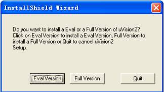 2.2 这时会出现如图2.1所示的安装初始画面,稍后弹出一个安装向导对话框如图2.2所示,询问用户是安装评估版(Eval Version)还是完全版(Full Version),可以选Full Version。