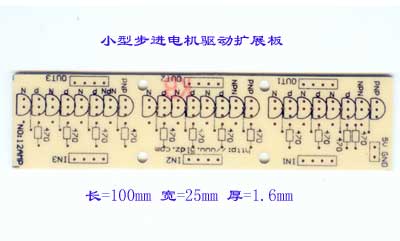 小型步进电机驱动扩展板,规格:100×25mm。一块板可以接三个小步进电机。喜欢动手制作的朋友欢迎制作。