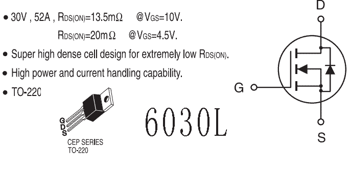 6030L,绝缘栅场效应管(MOS管)N沟道  有关场效应管的知识请点击  场效应管的工作原理及检测请点击